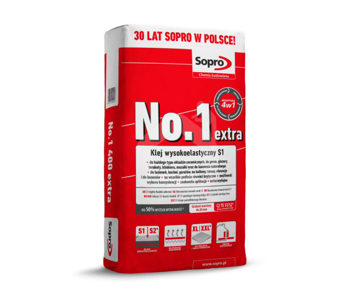 - Prekės kodas: Plytelių klijai Sopro Nr. 1 400 extra, 22,5 kg